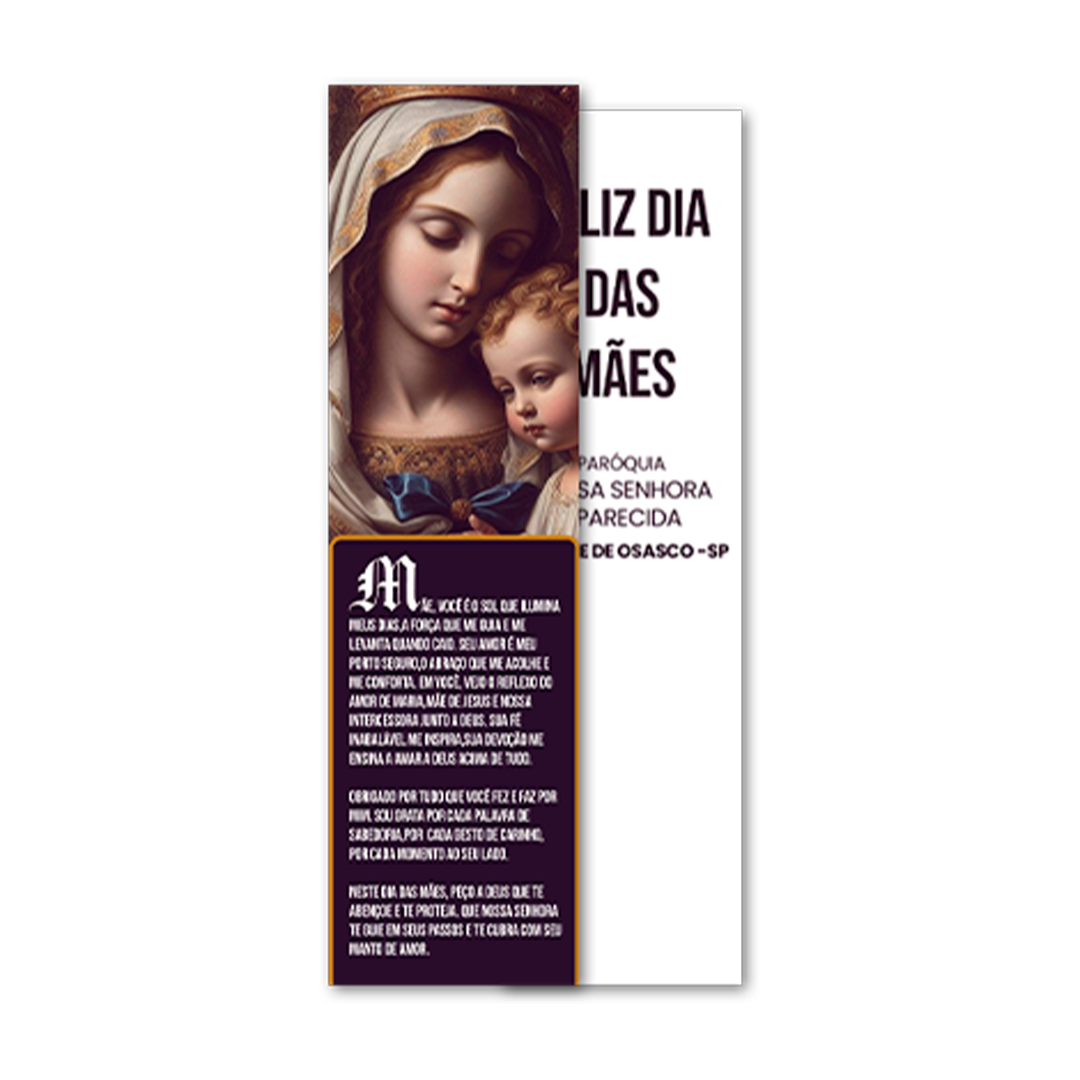 Surpreenda as mães de sua comunidade com um presente especial neste Dia das Mães! Com o nosso marcador de páginas 5x20cm, você tem uma singela maneira para expressar toda gratidão. Com impressão em 4 cores na frente, em papel couché 300g, garantimos qualidade e durabilidade.