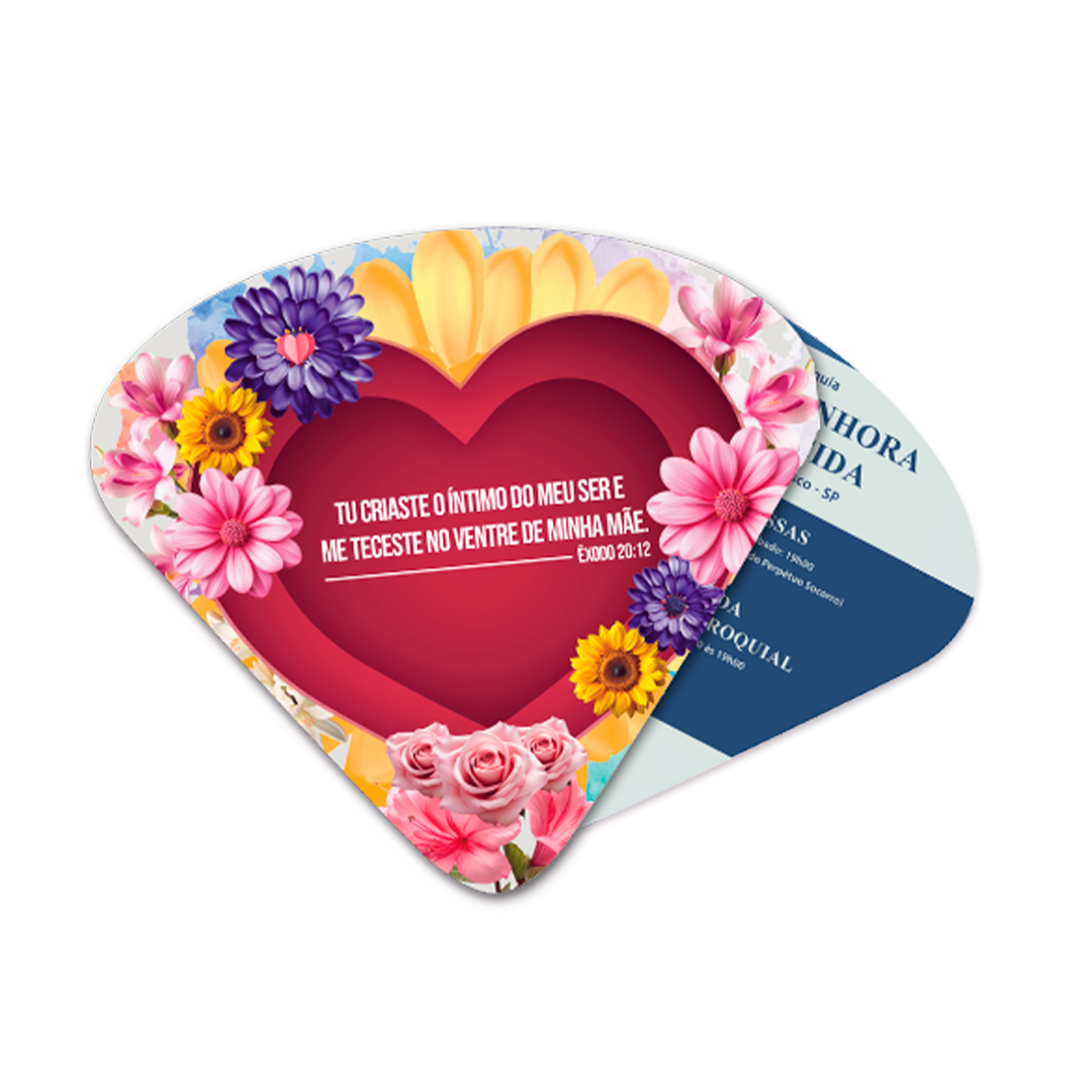Surpreenda as mães de sua comunidade com um presente especial neste Dia das Mães! Com o nosso leque 5x20cm, você tem uma singela maneira para expressar toda gratidão. Com impressão em 4 cores na frente e no verso, em papel couché 300g, garantimos qualidade e durabilidade.